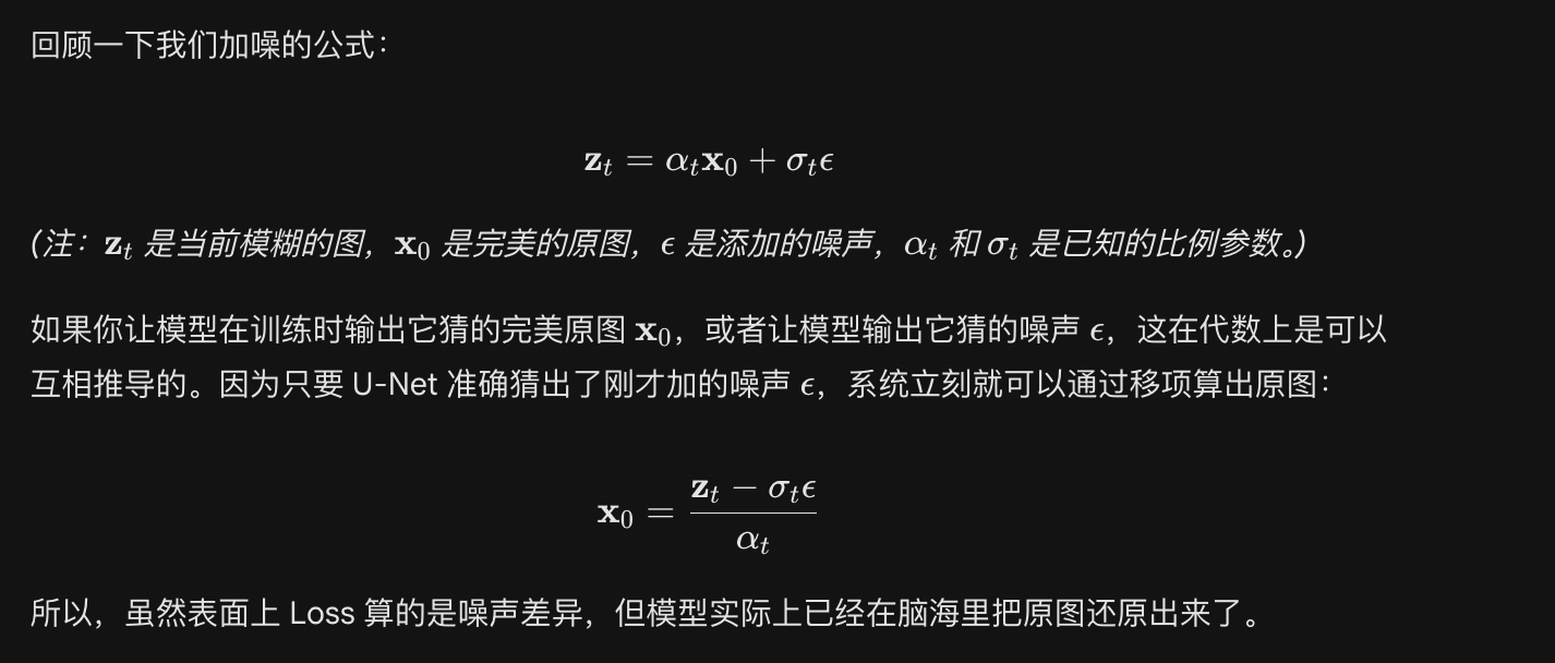 在 SDXL 训练的过程中,是以 预测的噪声 和 实际的噪声 的 差异 来计算loss的;但我在看那些普通的 MLP的分类器中,都是拿最终实际得出的分类结果进行softmax 再和 预期结果做比较算loss的;也就是说,MLP分类器的 训练 和 实际使用 的 结果 都是 分类结果;而这里 SDXL 训练中的 LOSS却是噪声,而实际使用中却要还原出图像;为何要用噪声当loss训练呢?