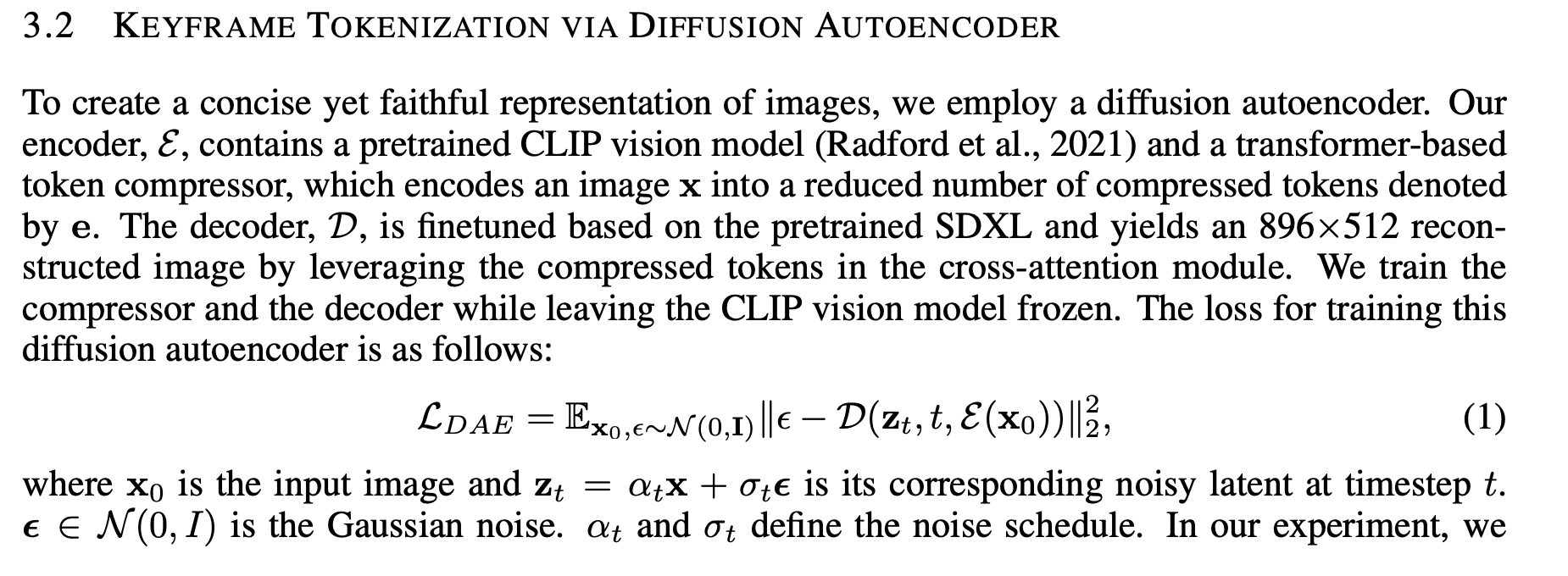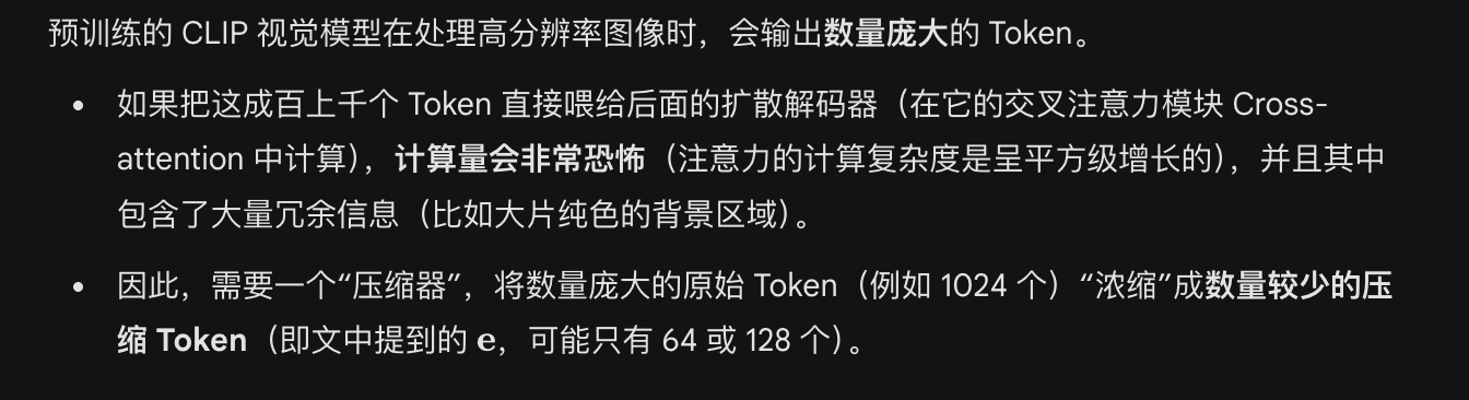 本文的 diffusion autoencoder 和原始版本有相差,原始版本的 zsem, 而SDXL的输入特殊,他接受一系列token;因此在这里 CLIP和 transformer压缩器将原始图像 压缩成一组序列token e;