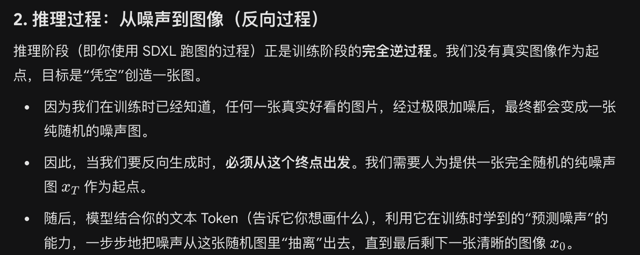 SDXL 在 使用过程中,往往要输入 一个完全 随机 的 噪声图和 一段文本描述转换而成的 token;既然是完全随机的,那为什么要加这个噪声图呢?这和训练 过程中 输入为 原本的图像加一个噪声,然后去预测这个噪声是什么,这个过程有什么关系?