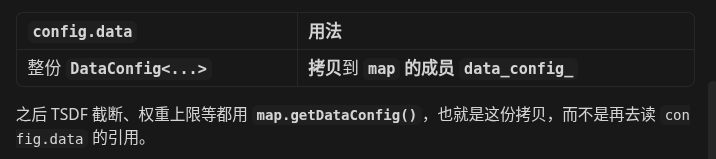 MapConfig/DataConfig(来自 YAML 的map、data),解决的是 地图多大、分辨率、截断、权重 等运行期配置,不改变ResT、BlockSize这两个编译期模板实参。