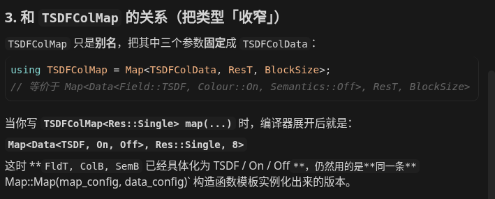 TSDFColMap是Map<TSDFColData, ResT, BlockSize>的别名;TSDFColData固定,不可通过该别名替换。只有