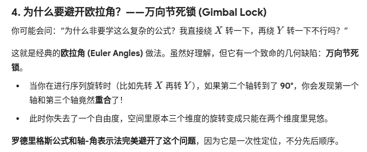 神奇的结论: 绕固定轴执行 XYZ 旋转的结果,在数学上等同于绕随动轴执行 ZYX 旋转。这就是为什么不同的软件(如 Unity, Blender, SolidWorks)虽然定义的旋转顺序不同,但最终能达成一致。