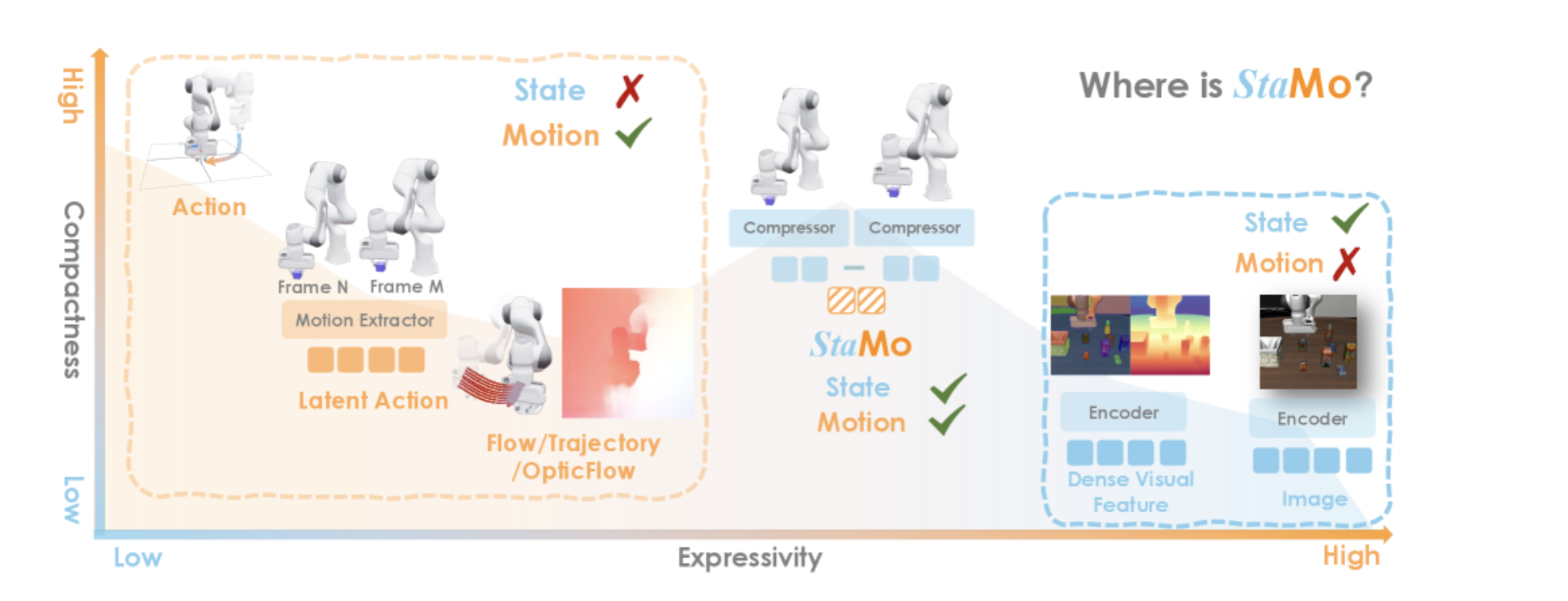 X轴的“表现力”,表示数据有多丰富;Y轴的 “紧凑型”,表示数据的紧凑性,高紧凑型往往表示 数据维度低。