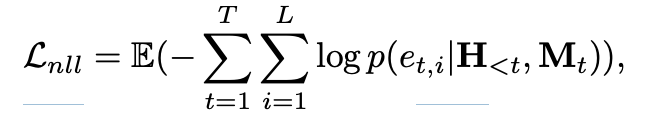 H<t即过去的经验, 根据过去的经验,外加剧本提示Mt, 在此条件下 计算p,即正确答案在 生成的概率分布 中的概率;