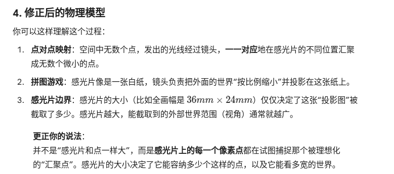 很远 的 物体 发过来的光是平行的,这是一种理想化;汇聚到一个点,这实际上也是一种理想化;实际上感光片和这个点的大小相同,能拍到的最大物体经过镜面到达焦点是的大小和感光片相同;这样的说法对吗?