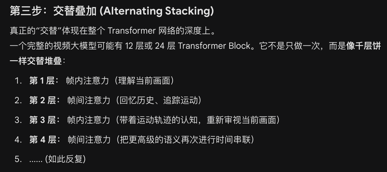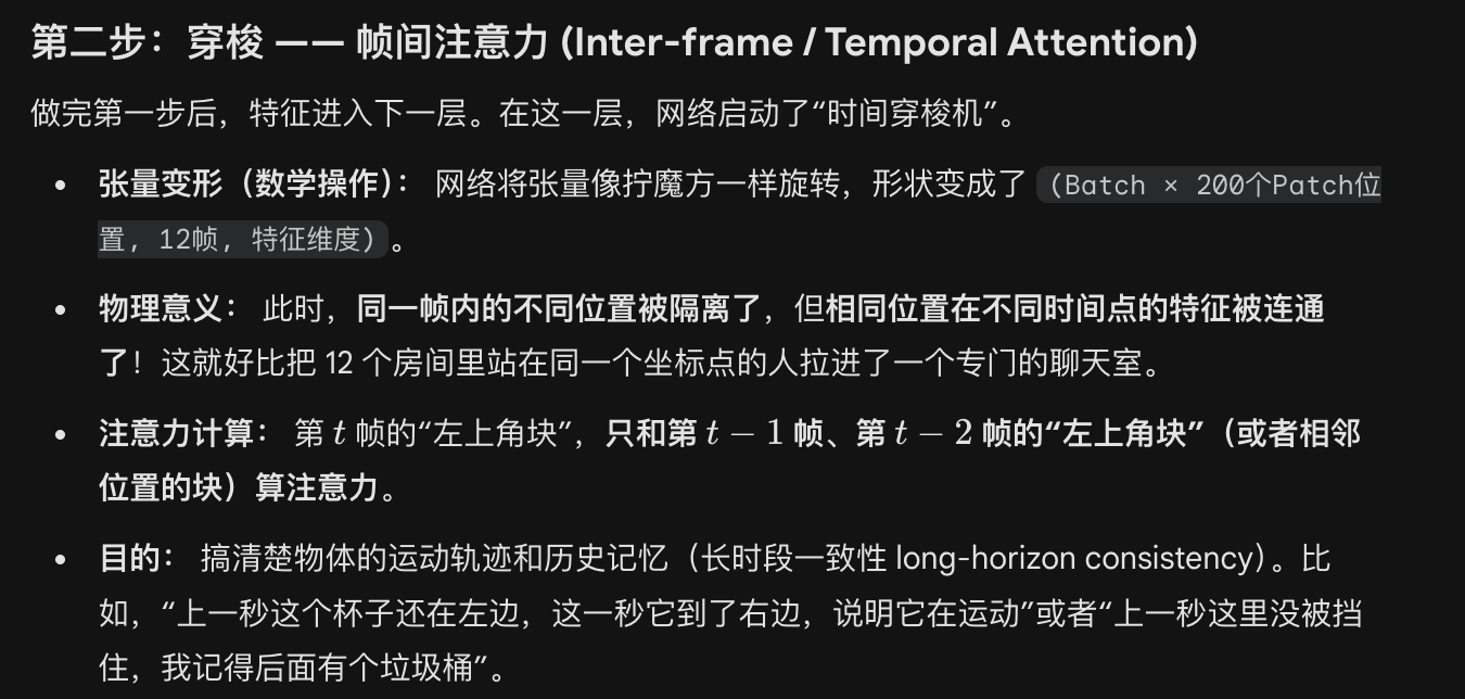 采用时空Transformer,同时对空间维度(捕捉单帧图像内部的视觉特征)和时间维度(捕捉帧与帧之间的时序关联)进行建模;
