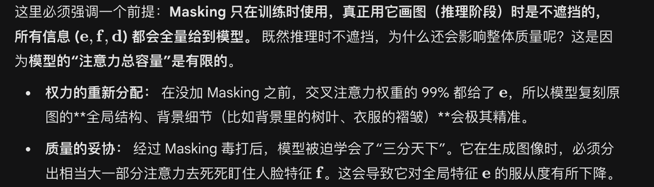选择用masking;是不是在舍弃一小部分 训练收敛速度 和 最终模型生成图形质量 的情况下,换取 对脸部细节的 更精密生成?